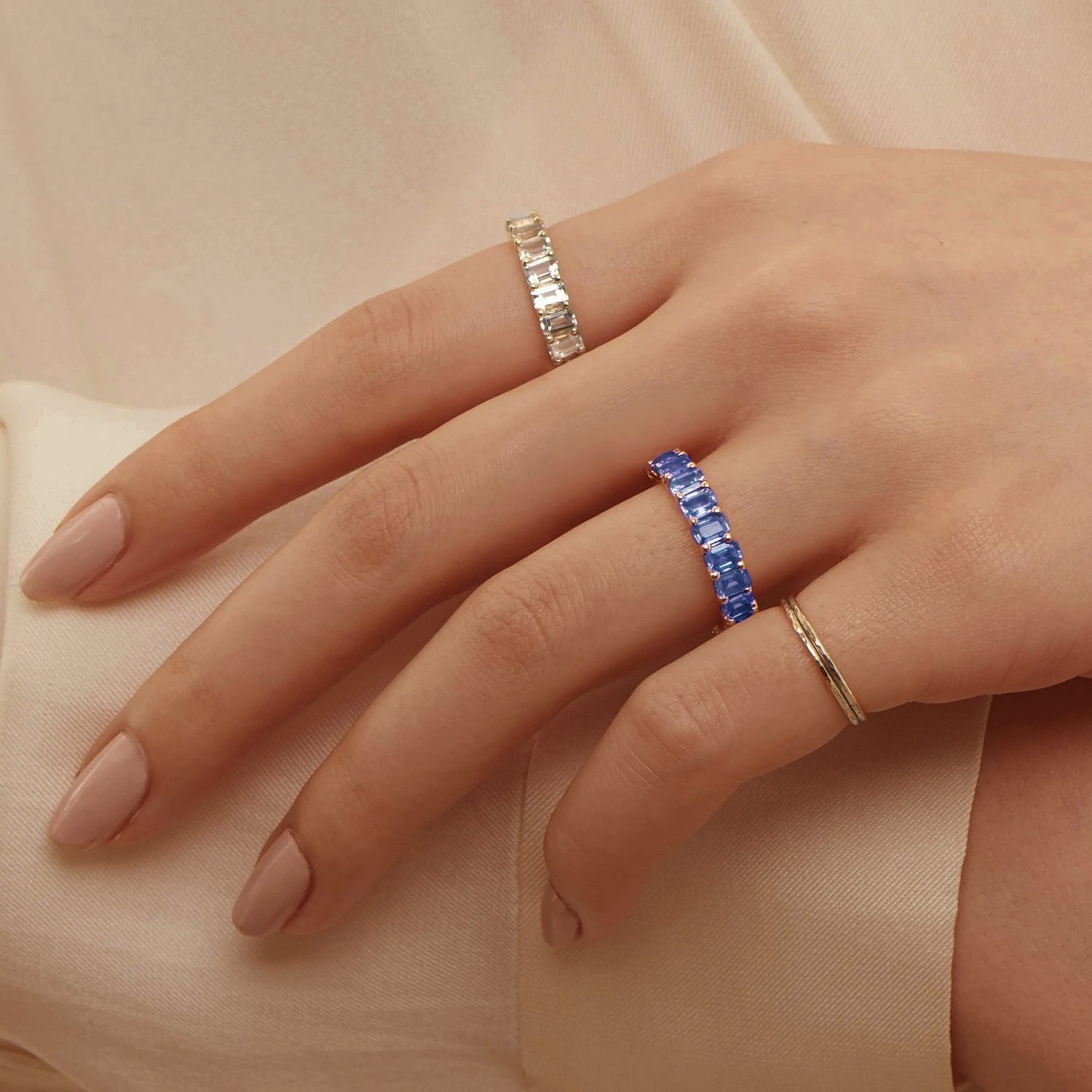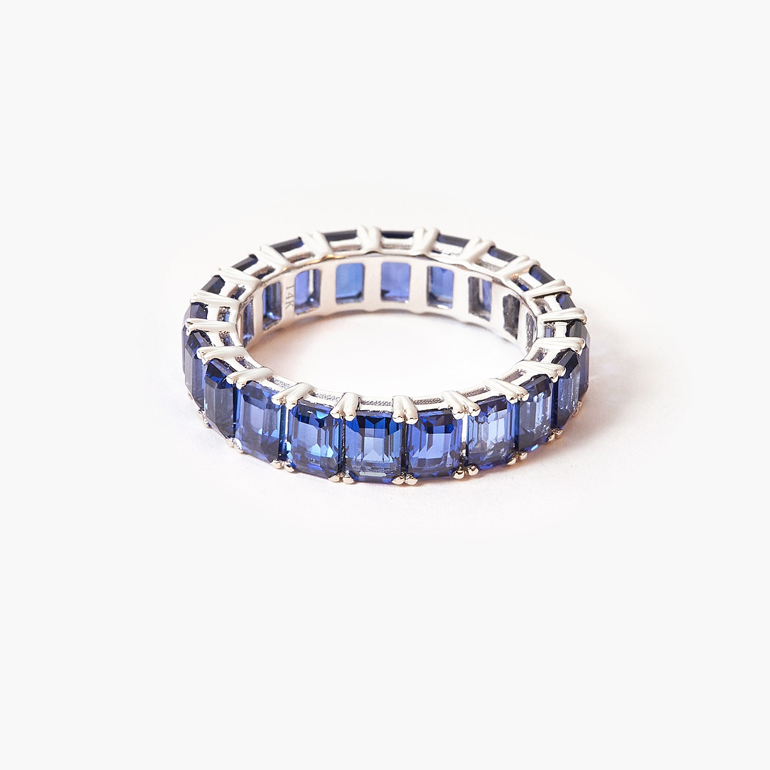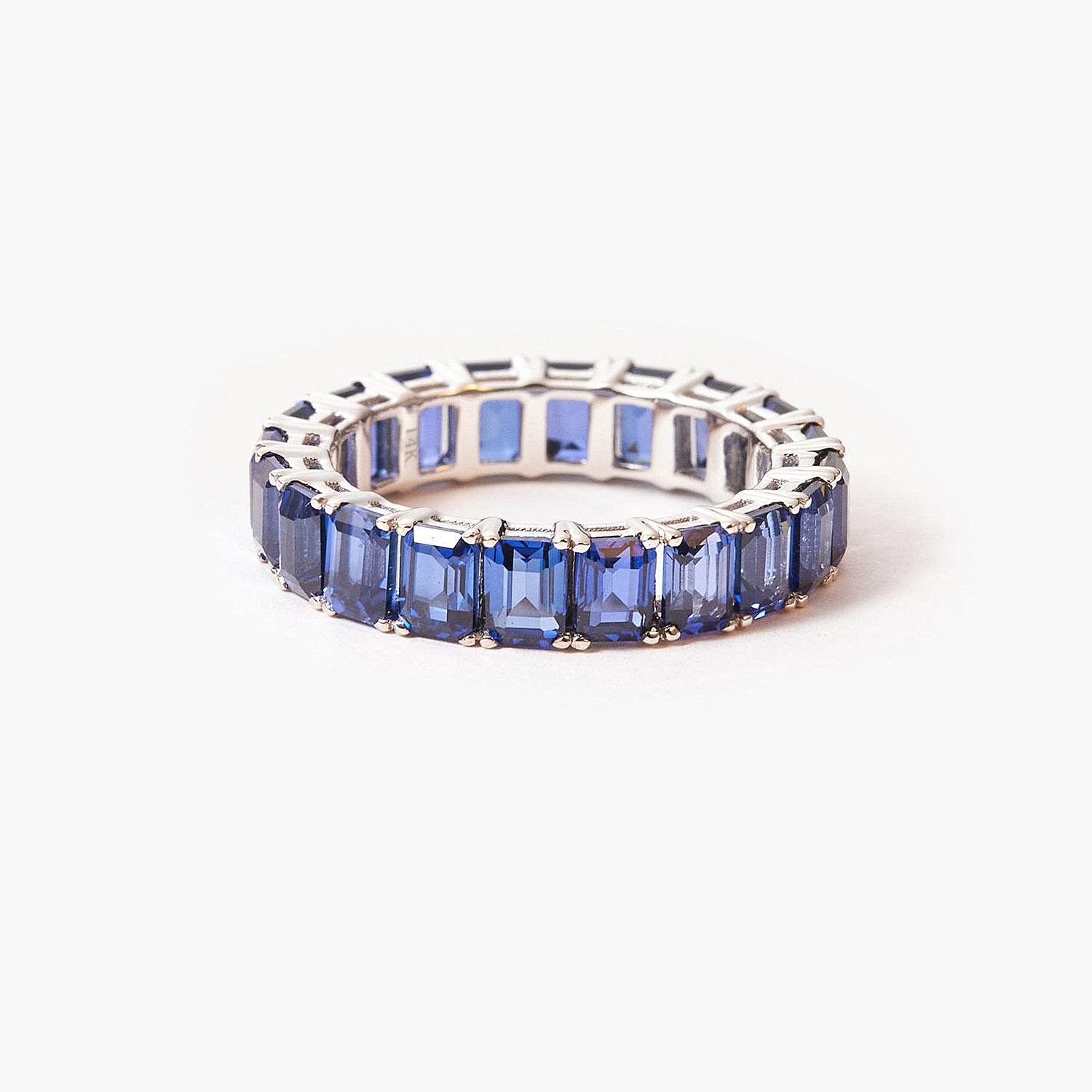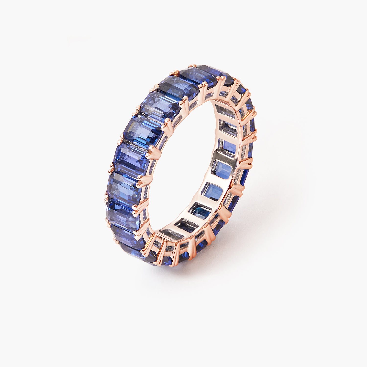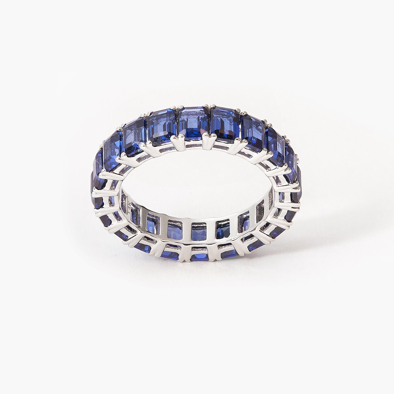 BOVANNI Blue Sapphire Emerald Wedding Ring Cut Fully Timeless