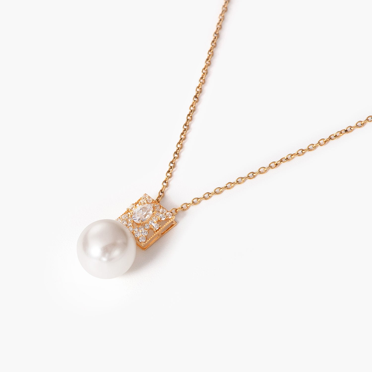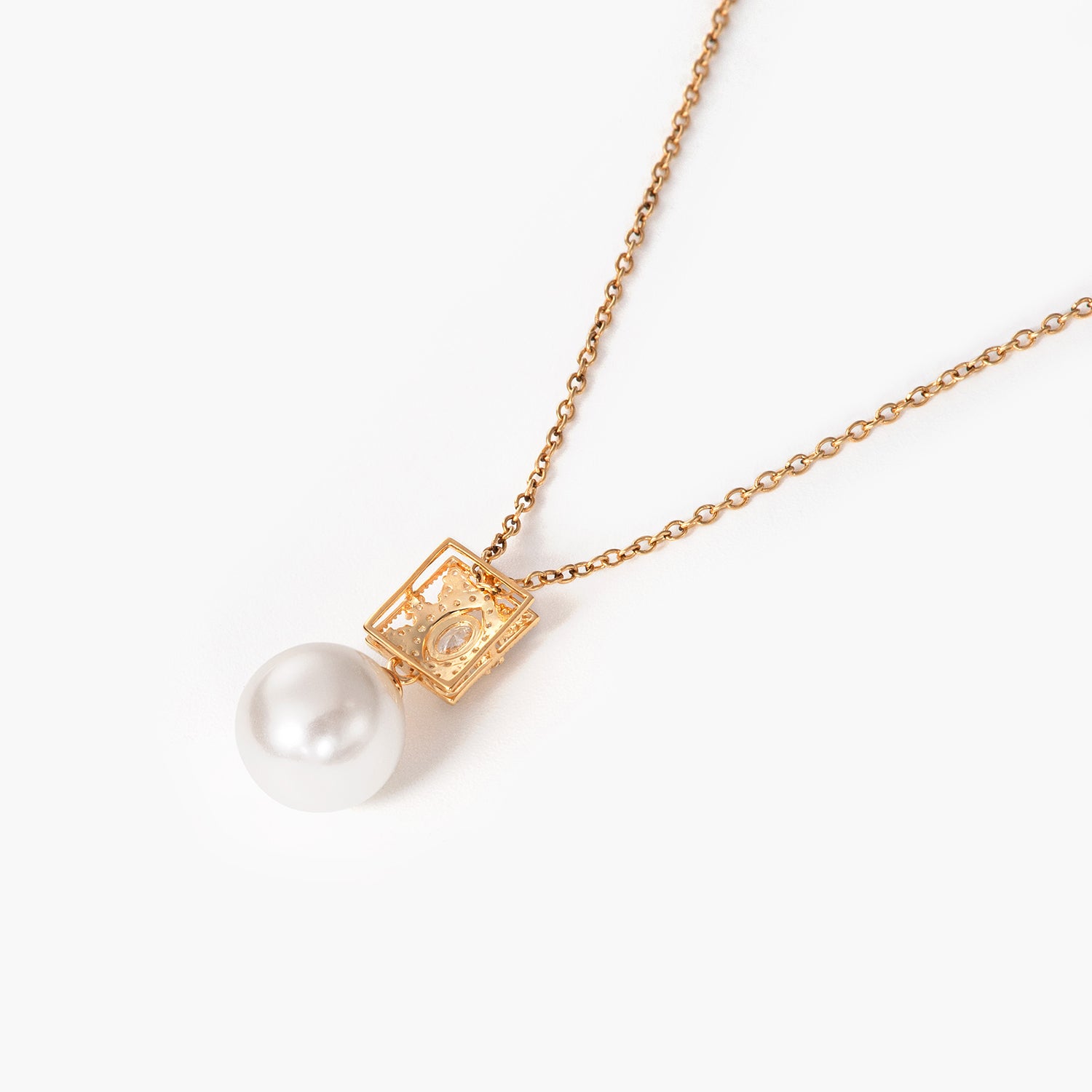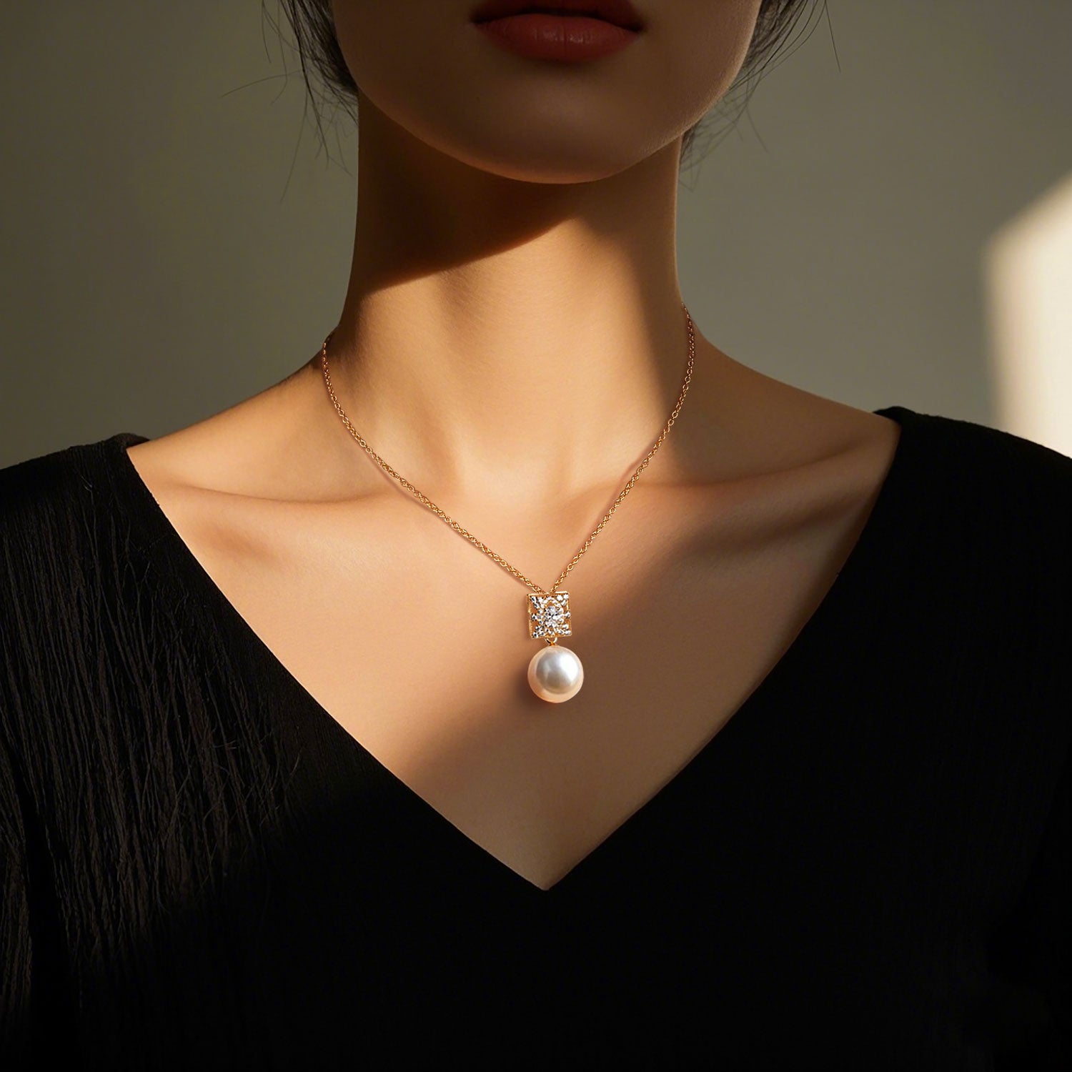 Elegant 14K Gold Pearl Pendant Neckalce with Natural Diamonds – BOVANNI